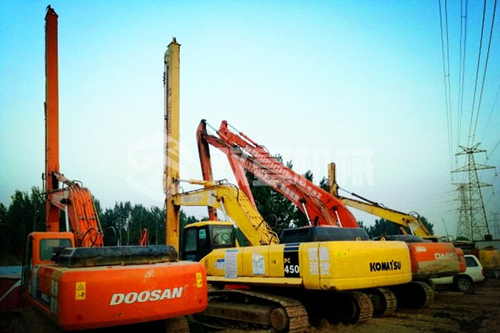 雙壹公司備有多臺長臂挖掘機,15-200米各種長度,一站式解決您的深坑挖掘難題。