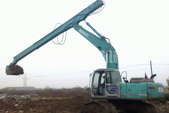 兩節伸縮臂是雙壹機械2005年自主研發的突破性產品,被多家同行模仿制造,從未被超越;臂長度19米,采用高噸位的三機聯動折彎設備折成U型,雙U型對接的焊接方式。