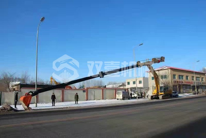 超長四節臂:總長度可達48米,臂內可再伸出3節,施工深度42.5米,配帶貝殼斗1.8立方或挖掘斗1.0立方。