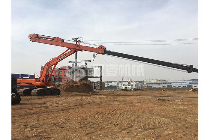 超長四節(jié)臂:總長度可達48米,臂內(nèi)可再伸出3節(jié),施工深度42.5米,配帶貝殼斗1.8立方或挖掘斗1.0立方。
