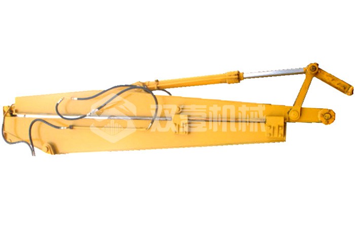加長臂:加長臂是我們最常見,使用時間更早的大小臂加長臂,不需要伸縮缸控制。它通過大臂、小臂同時加長,配帶小挖斗,擴大機械的工作范圍。