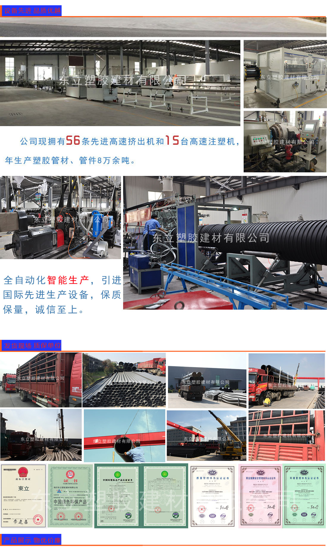 PE拖拉管采用目前世界上最先進(jìn)的技術(shù)生產(chǎn)制造的,具有高速擠出成型,熔融適度,自動(dòng)定尺切割,PLC控制生產(chǎn)全過程的先進(jìn)性能。